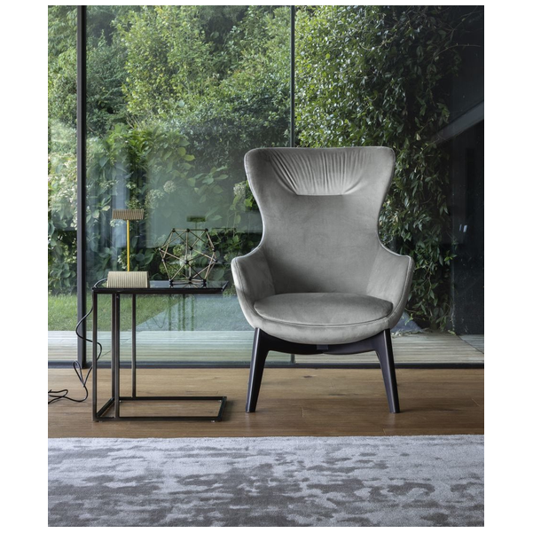Fotel Iseo Nicoline Italia bezproblemowo łączy wygodę ze stylem, dzięki miękkiej wyściółce i unikalnemu profilowi. Dzięki przyciągającym wzrok krzywiznom i ukośnym nogom tworzy oszałamiający kontrast, który sprawia, że fotel jest pięknym punktem centralnym, który pasuje do reszty nowoczesnych mebli. Wielowymiarowa sylwetka tworzy głębokie siedzisko, które dopasowuje się do ciała, zapewniając wsparcie i przytulność. Wyprodukowany we Włoszech z niezwykłą dbałością o szczegóły, fotel Iseo jest dostępny w wersji stałej i obrotowej. Wybierz spośród wielu opcji tapicerki materiałowej i skórzanej, a także różnych wykończeń drewnianych nóg. Szwy są dostępne w dopasowanych, jaśniejszych lub ciemniejszych kolorach w celu dodatkowego dostosowania.
