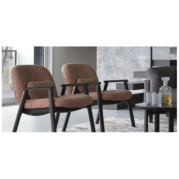 Rama krzesła Baltimora wykonana jest z drewna jesionowego, ma elegancki półeliptyczny wzór na nogach i podłokietnikach. Miękka tapicerka, która nadaje estetyczny przytulny wygląd, zawiera małą poduszkę podparcia lędźwi w dopasowanym pokrowcu i gwarantuje fotelowi Baltimora najwyższy komfort siedzenia.