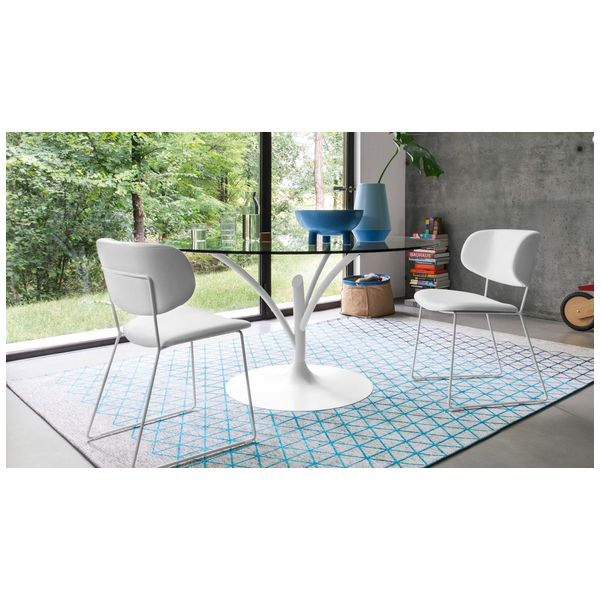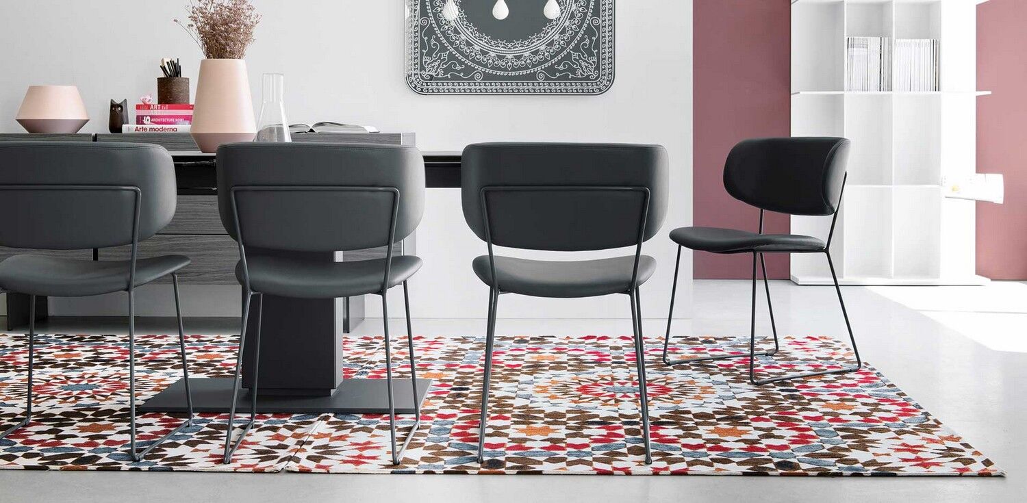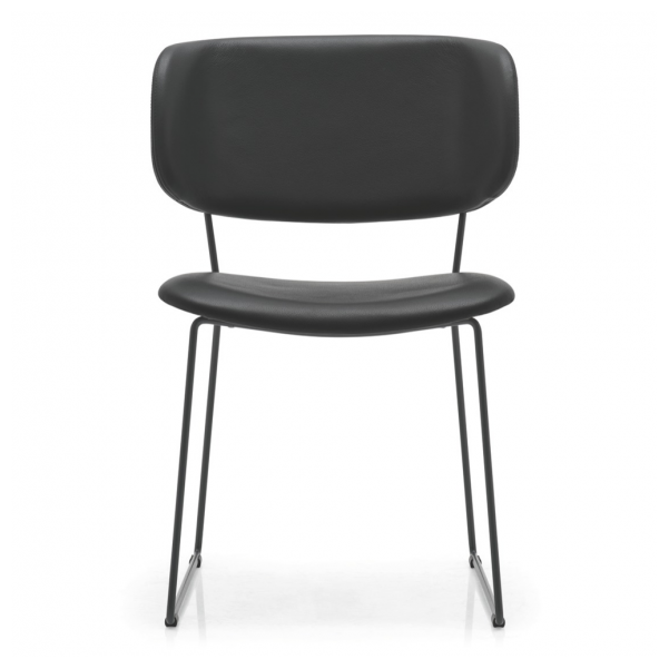 - Metalowe krzesło z tapicerowanym siedziskiem i oparciem.