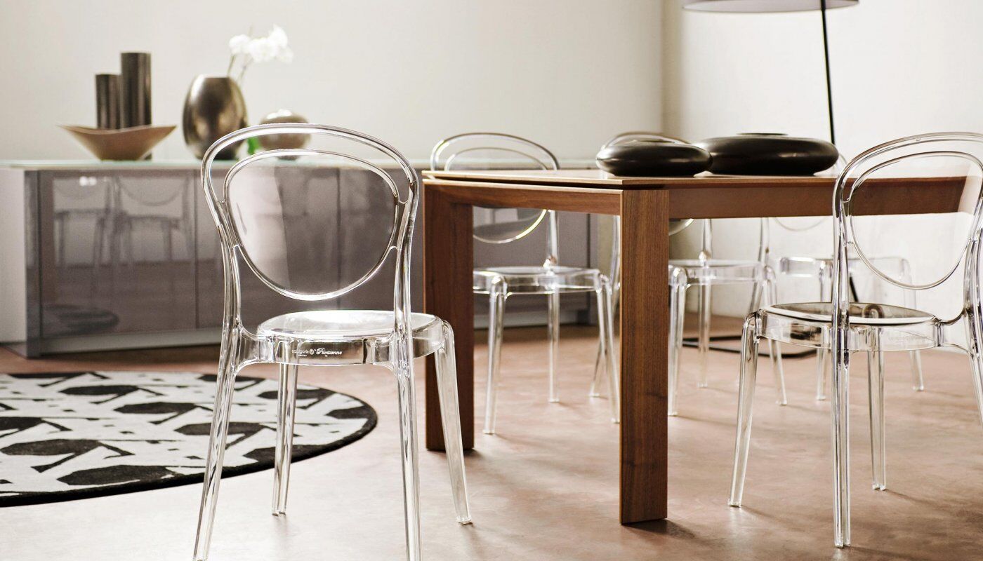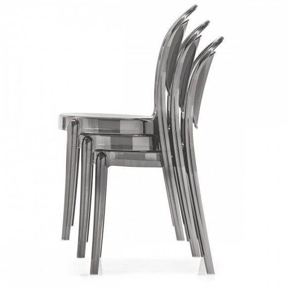 Krzesło monoblokowe Parisienne, w całości wykonane z poliwęglanu, do ustawiania w stosy do czterech krzeseł, nadaje się również do użytku zewnętrznego. Krzesło charakteryzuje się zaokrąglonymi kształtami i brakiem ostrych krawędzi, co przywołuje delikatny styl klasycznych francuskich krzeseł bistro z początku XX wieku. Wykonany z poliwęglanu, materiału zapewniającego doskonałą odporność na wstrząsy i warunki atmosferyczne, jest bardzo lekkie i łatwe do przenoszenia. Niezwykle funkcjonalne, o niepowtarzalnym designie, jest idealnym krzesłem do dekoracji kuchni, baru czy części wspólnych na zewnątrz. Dostępne w różnych wykończeniach, błyszczące lub przezroczyste.