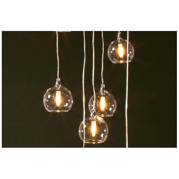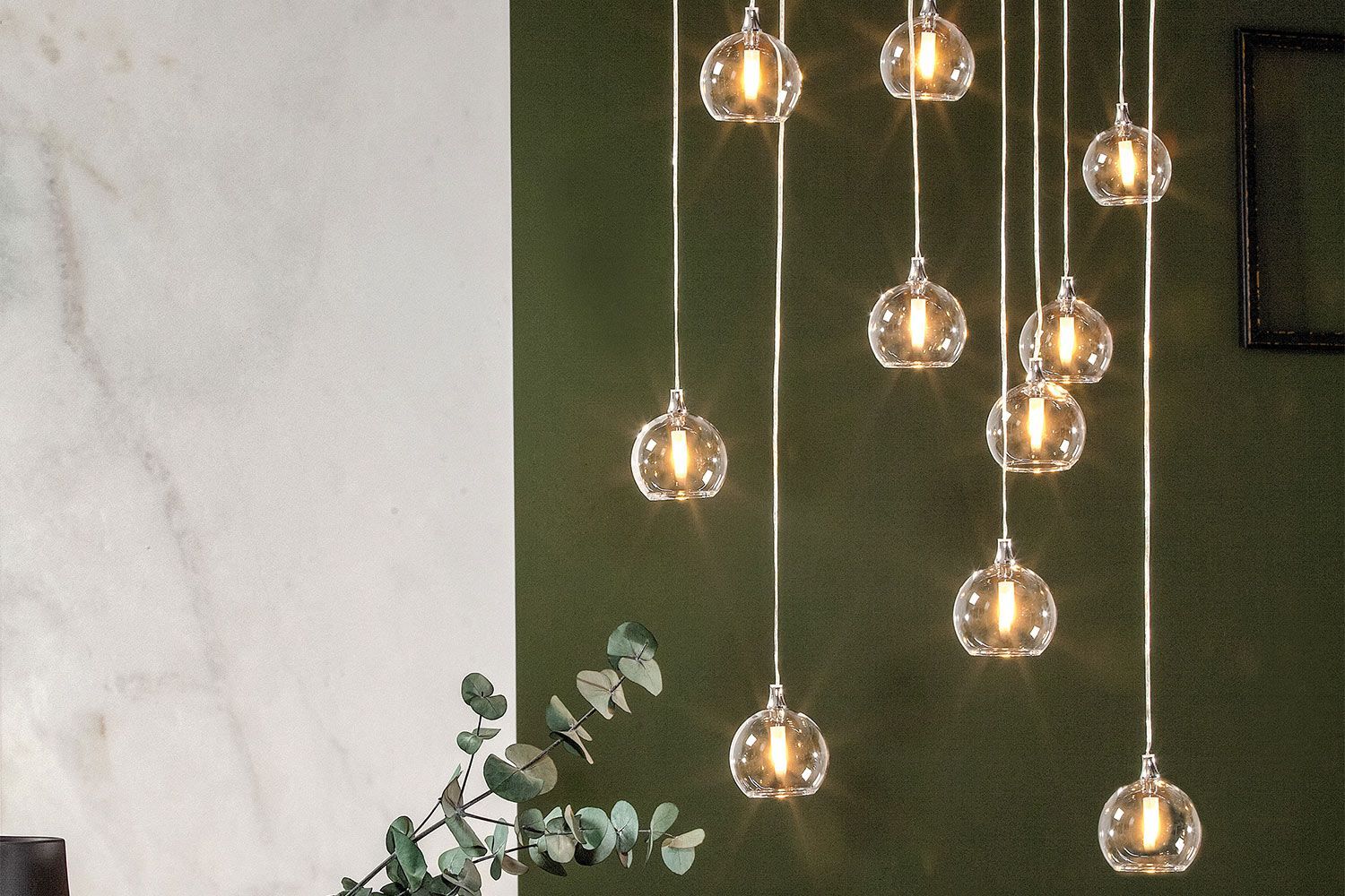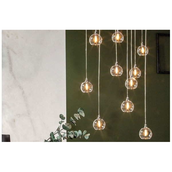 Ming oświetla styl współczesnego domu. Okrągłe światła są zawieszone na różnych długościach, tworząc olśniewającą oprawę oświetleniową, która nie tylko otacza pomieszczenie oświetleniem otoczenia, ale jest również uroczą opcją dekoracyjną. Zawieś ją nad stołem lub w przedpokoju, aby uzyskać wszechstronne efekty wizualne. Ming firmy Tonin Casa jest dostępny z dziesięcioma lub dwunastoma lampami. Dyfuzory są dostępne w różnych wykończeniach szklanych.