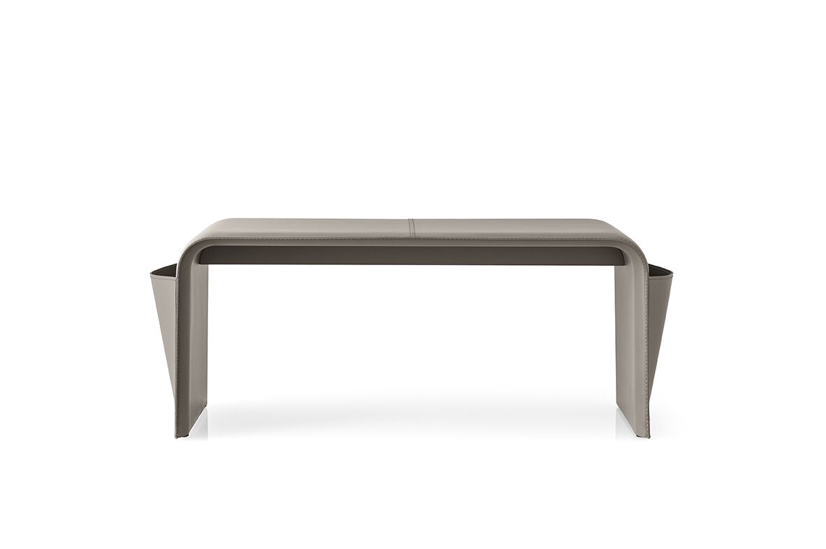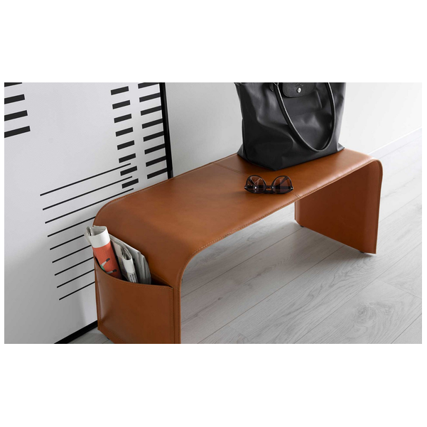 Ławka obita skórą z kieszeniami na czasopisma. Shape to idealny dodatek do wyposażenia Twojego domu. Jest niezwykle stylowy dzięki tapicerce „Vero Cuoio” (prawdziwa gruba skóra), a lekko tapicerowane siedzisko zapewnia wygodę. Jego kompaktowe wymiary i 2 boczne kieszenie, które mogą służyć jako stojak lub uchwyt na czasopisma, sprawiają, że jest to niezwykle wszechstronny produkt zarówno w salonie, jak i sypialni. Dowiedz się o wszystkich dostępnych wykończeniach!