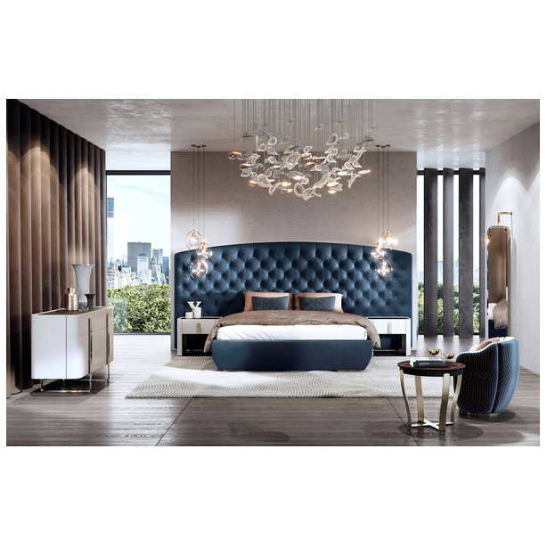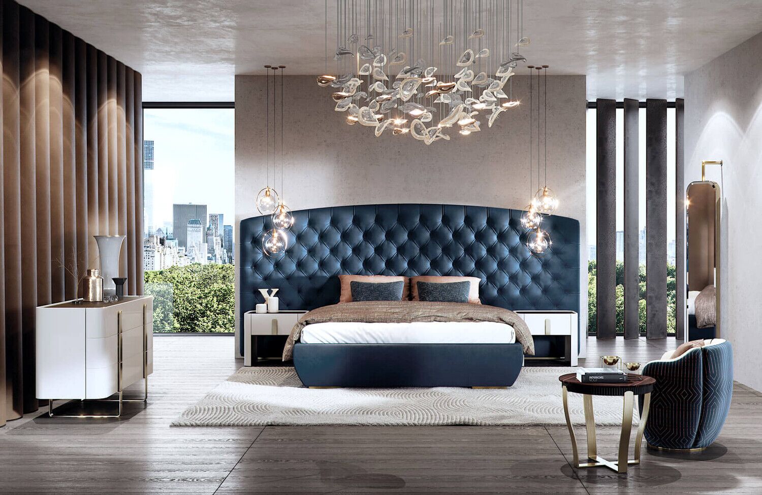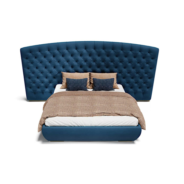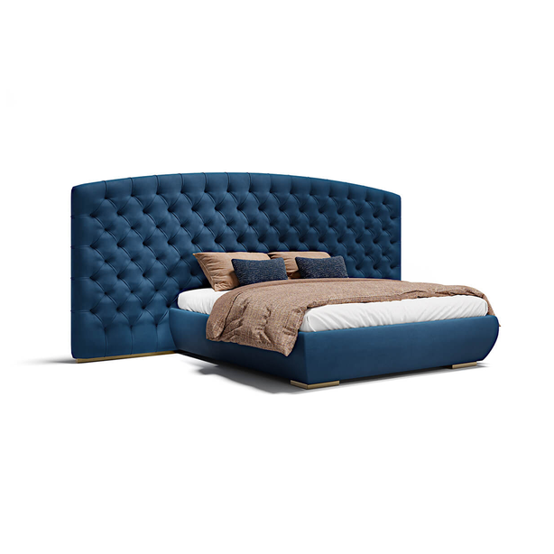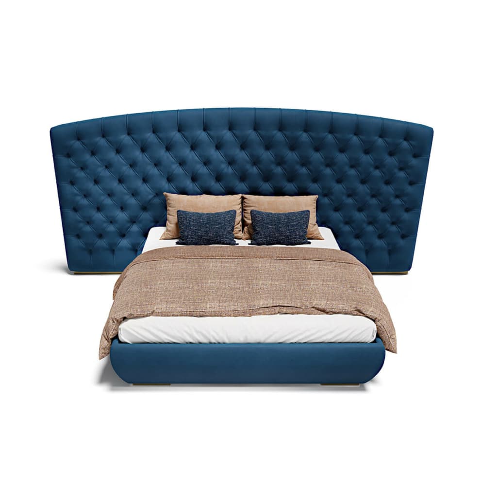 Łóżko Kesy, wyrafinowane i faliste, ma miękkie linie, które łączą się z delikatnie pikowanym zagłówkiem.
