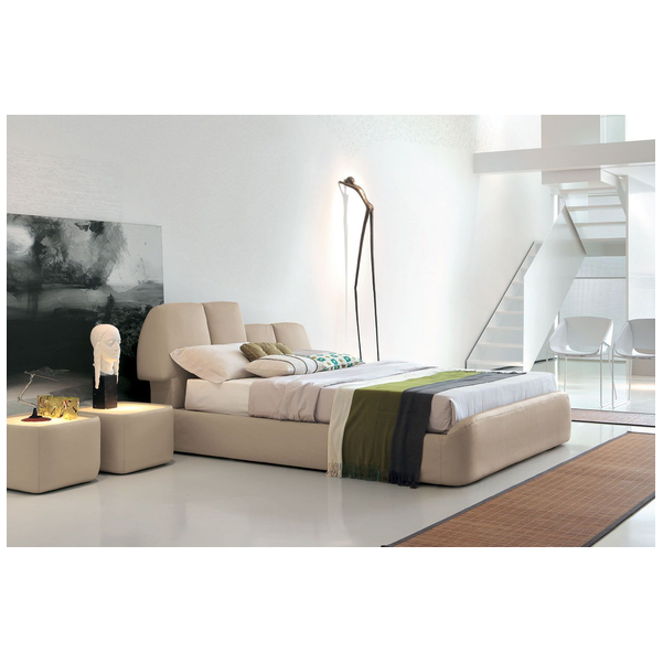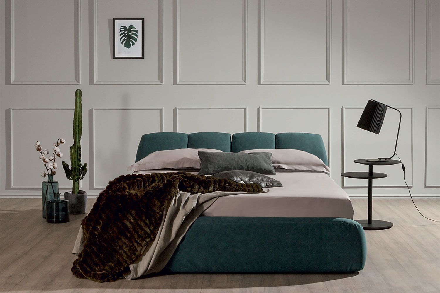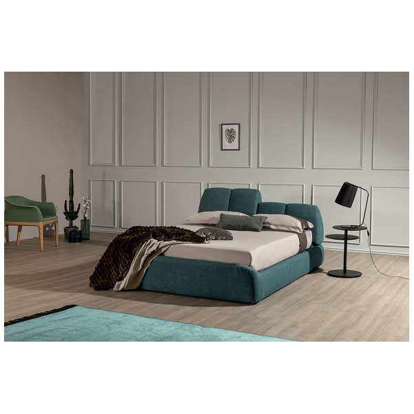 Łózko Tuny łączy w sobie siłę, czystość i harmonię: zagłówek, podzielony na cztery różne sekcje, tworzy jedyną w swoim rodzaju geometrię. Pokryte jest skórą, ekoskórą lub tkaniną z impregnacją wodoodporną, odporną na plamy.