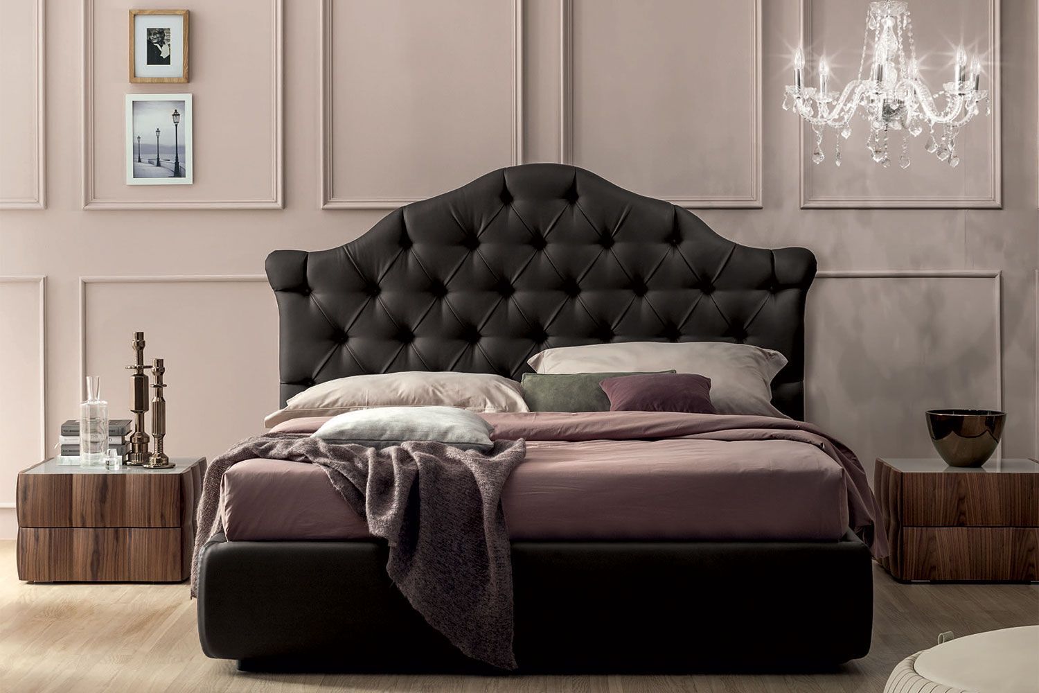 Wspaniałe i eleganckie łóżko Veneziano marki Tonin Casa wyróżnia się stylem w nowoczesnej sypialni. Gustowny zagłówek z asymetrycznymi krawędziami dodaje szyku, szczegółowy, pikowany wzór dodaje wyrafinowanego akcentu, aby łóżko stało się wspaniałym punktem centralnym sypialni. Dzięki luksusowej tapicerce i wysokiej jakości materiałom Veneziano będzie trwałe przez lata. Aby zapewnić wygodną funkcję, dostępne są opcjonalne schowki, które ułatwiają organizację. Dostępne są różne opcje tapicerki skórzanej i ekoskóry.