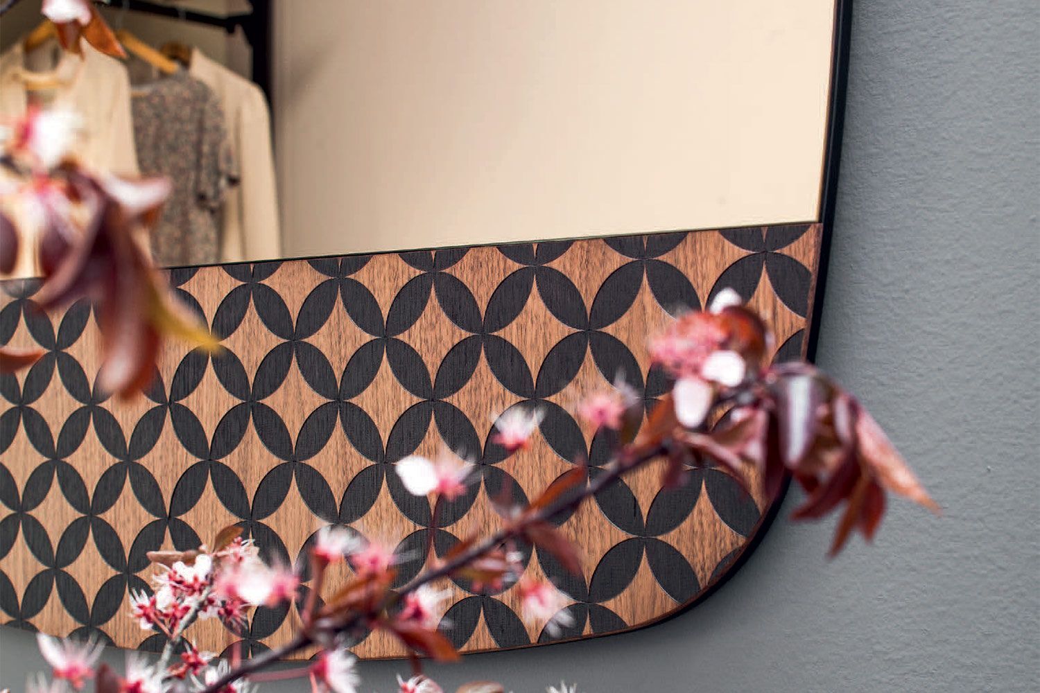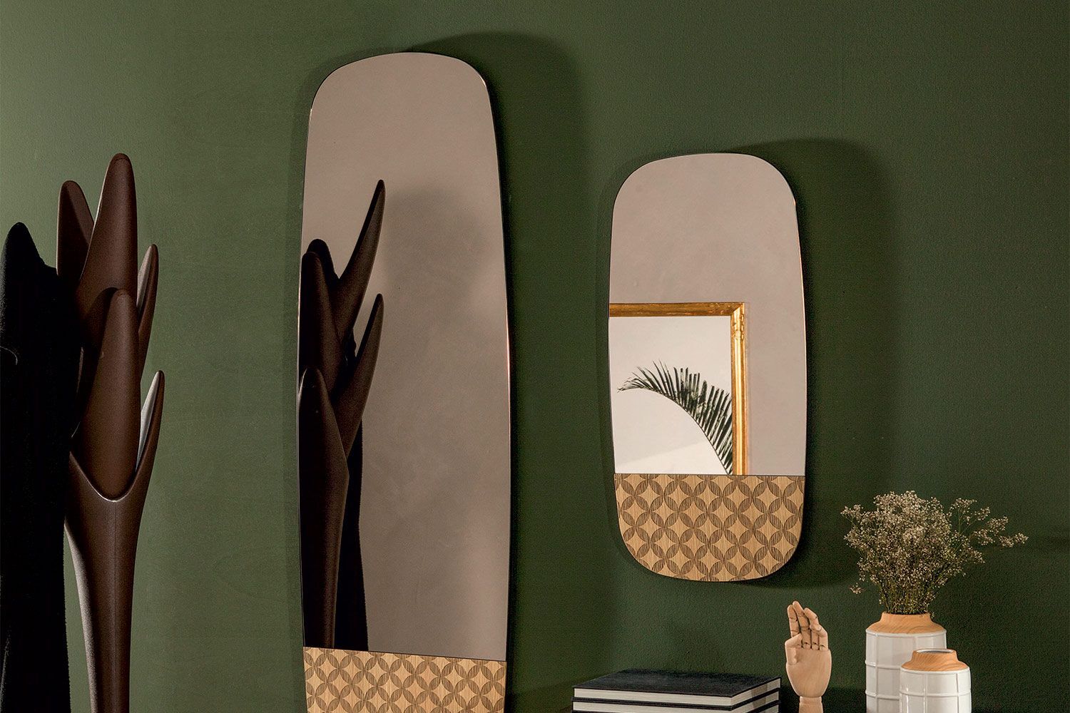 Lustro Marguerite marki Tonin Casa dodaje charakteru współczesnemu domowi. Przyciągający wzrok geometryczny wzór wzdłuż krawędzi dodaje urzekającego stylu, który wyskakuje na odblaskowej powierzchni. Dzięki zastosowaniu tylko najlepszych materiałów lustro zachowuje trwałość na długie lata. Jest to nie tylko funkcjonalny element nowoczesnego wystroju, ale także piękna grafika ścienna. Marguerite jest dostępne w małym, średnim i dużym rozmiarze. Drewniana konstrukcja ma różne wykończenia i dostępne są różne wykończenia lustrzane.