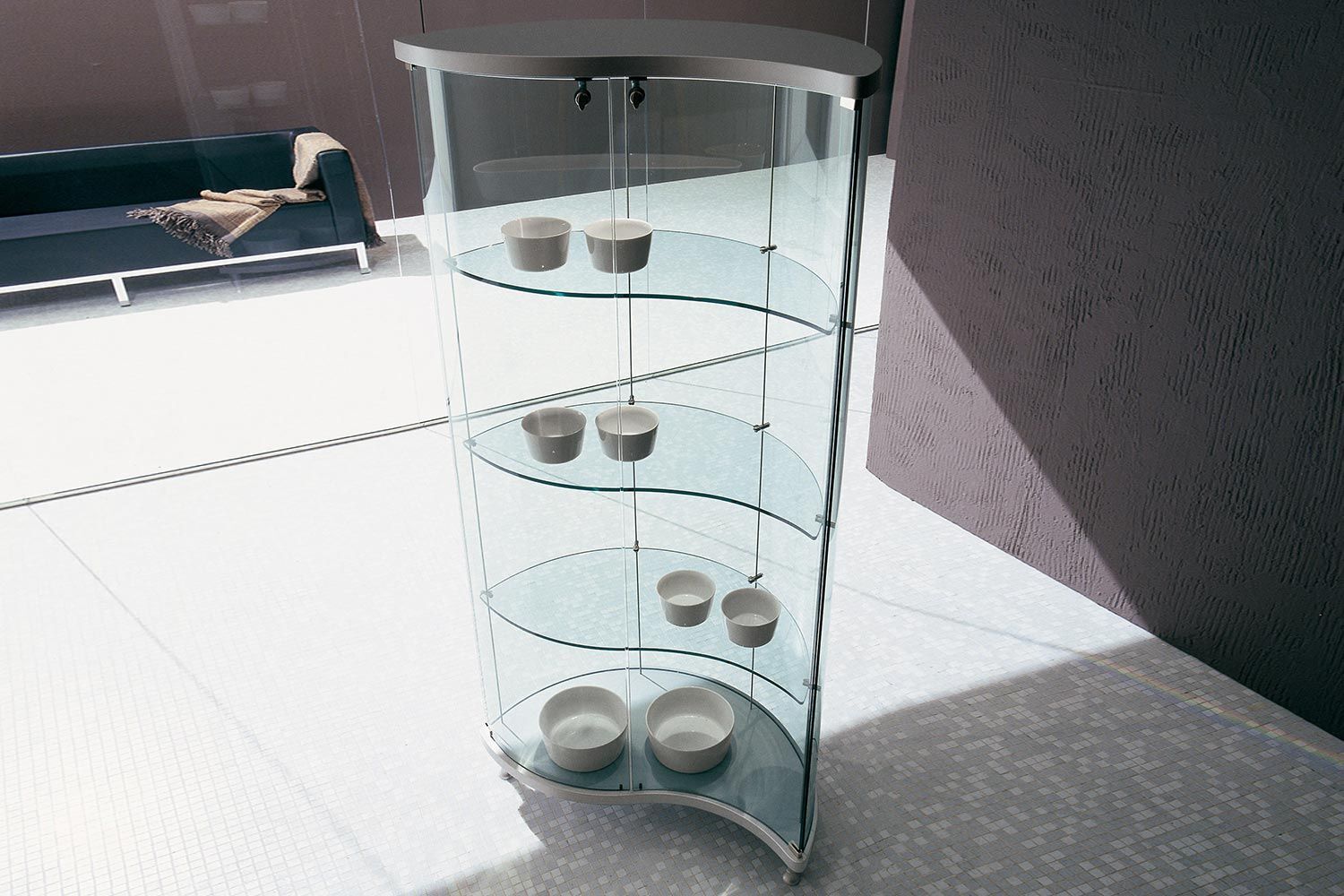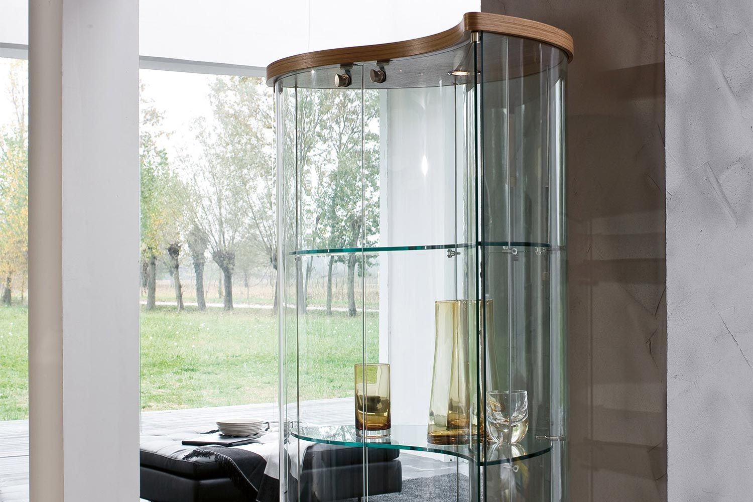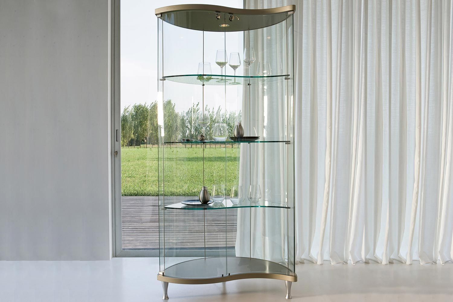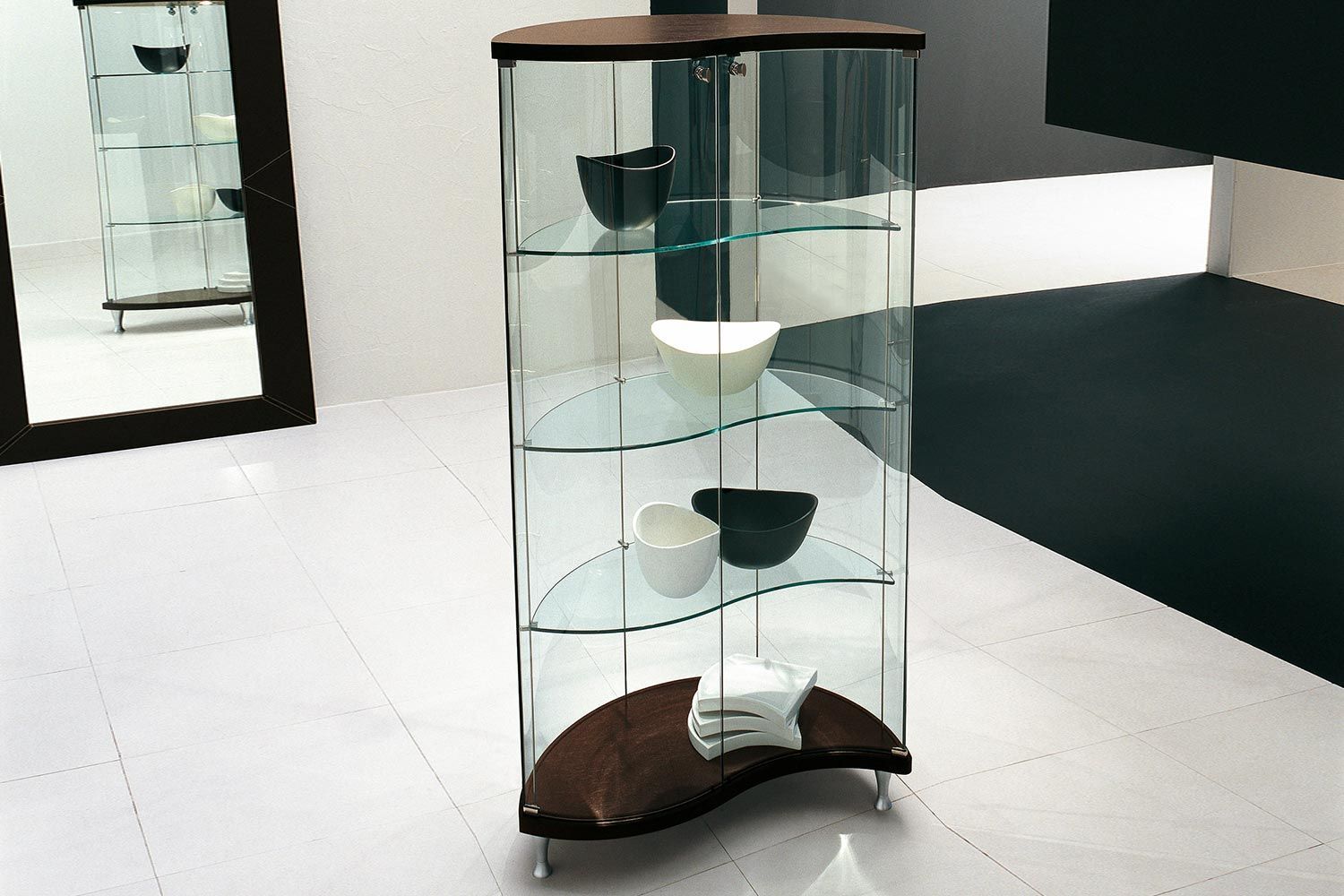 Oregina marki Tonin Casa to idealny sposób na wyeksponowanie pamiątek i elementów współczesnego wystroju. Przypominająca falę, Oregina ma wirującą sylwetkę, która stanowi wyraz w nowoczesnym domu. Chociaż szklane półki wyglądają na kruche, są solidne i trwałe, aby z łatwością podtrzymywać przedmioty. Dostępnych jest 1-4 energooszczędnych LED, które podkreślają przyciągające wzrok elementy wnętrza. Produkty Oregina charakteryzują się wysokim stopniem indywidualizacji. Drewniana podstawa i blat są dostępne w różnych wykończeniach.