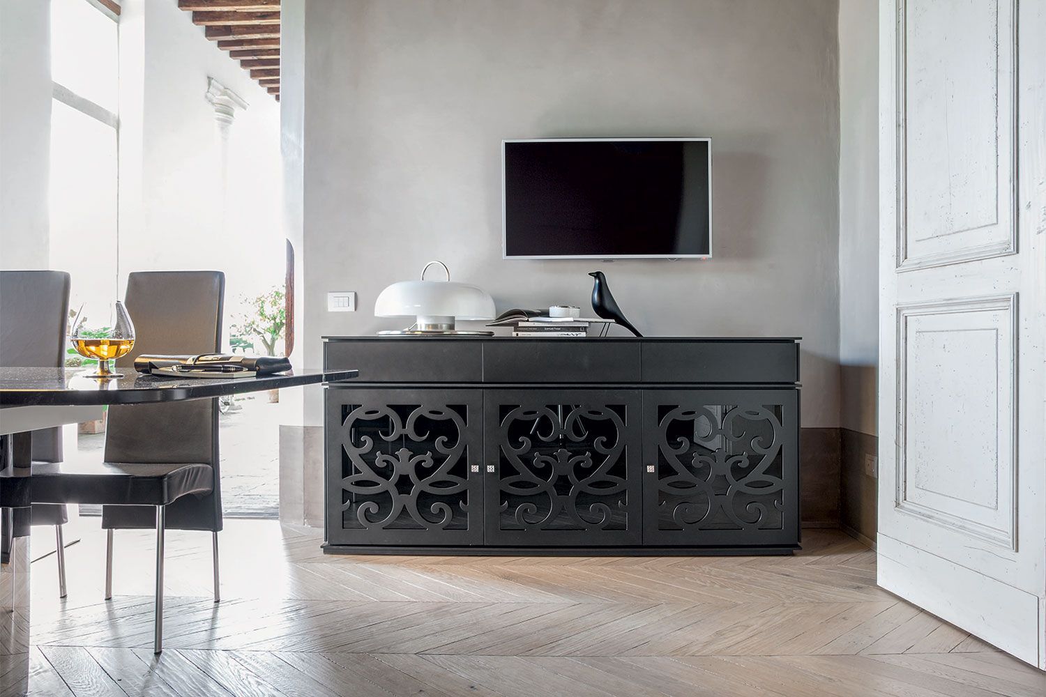 Dodaj wyrafinowany styl do swojego nowoczesnego domu, dzięki niezwykłemu kredensowi Paris marki Tonin Casa. Mnóstwo miejsca w każdej szafce sprawia, że ​​wszystkie Twoje rzeczy są ukryte i uporządkowane. Niesamowita dbałość producenta o szczegóły zapewnia trwałość na długi czas. Paris jest częścią luksusowej kolekcji Paris. Struktura jest dostępna w różnych matowych wykończeniach, drzwi wyposażone w różne opcje szkła.
