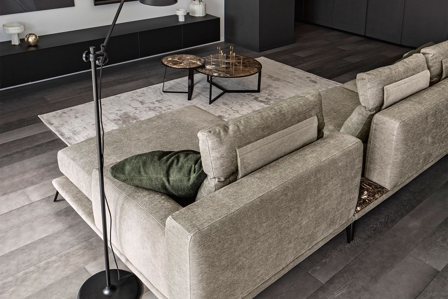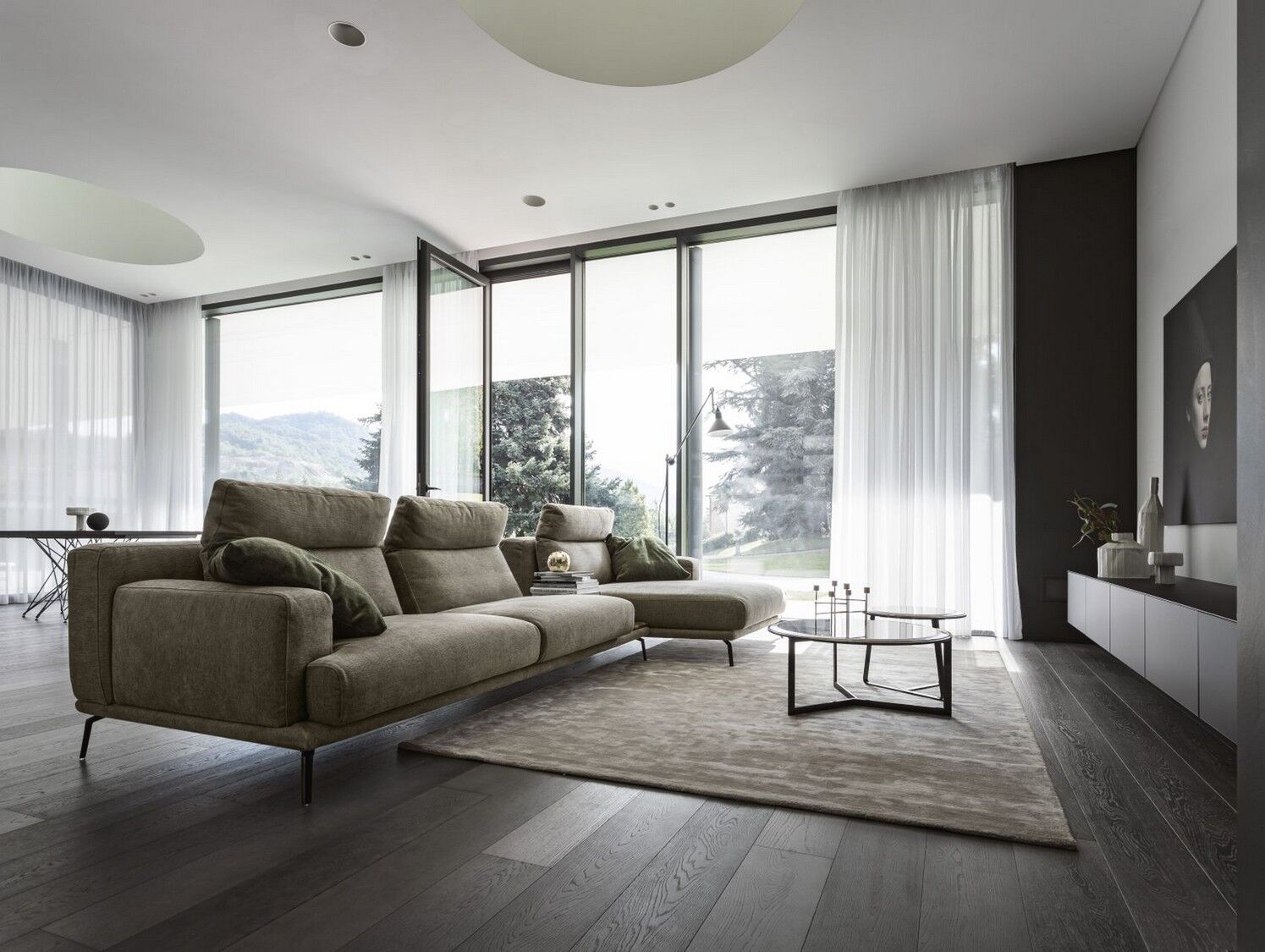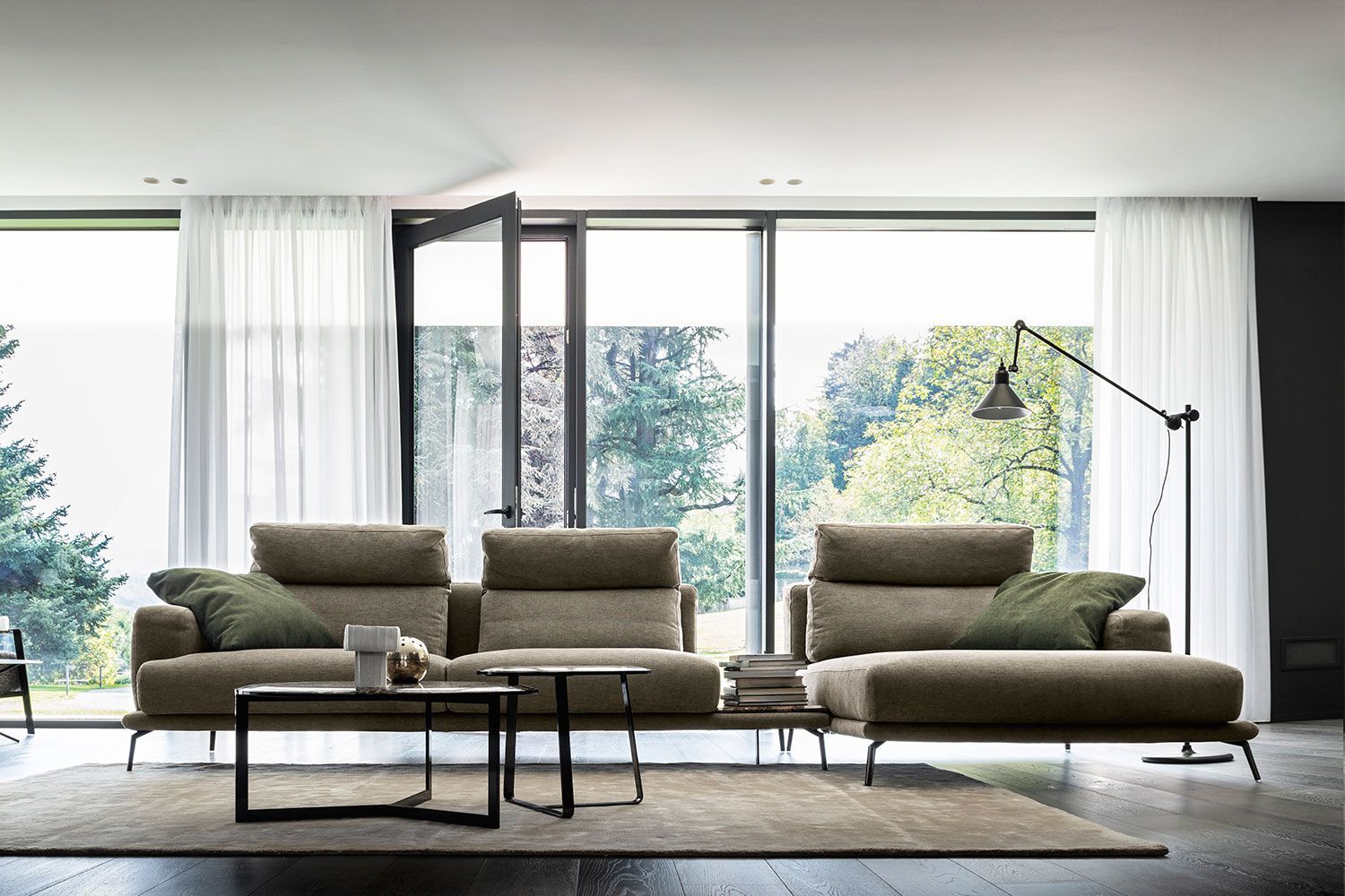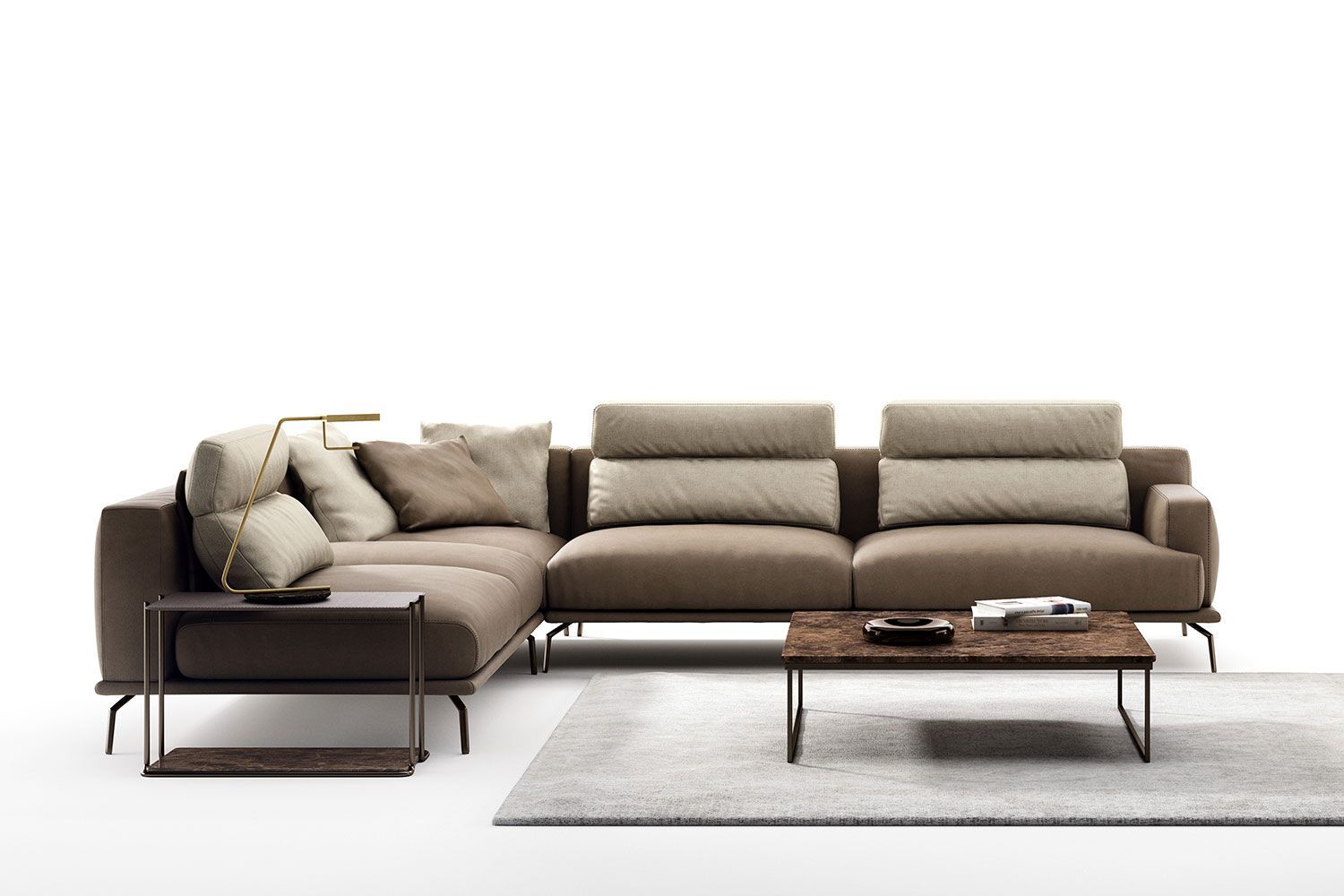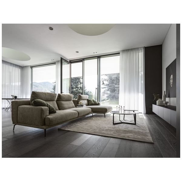 Idealna w każdym ustawieniu, sofa Babila ma sztywną konstrukcję, przerywaną miękkimi liniami lekko pochylonych poduch oparciowych i zagłówków. Pełna wygodnych funkcji sofa to jedyny w swoim rodzaju produkt ze zintegrowanym stolikiem bocznym między dwiema poduszkami i wygodnym szezlongiem. Dzięki miękkiej tapicerce i amortyzującej wyściółce zapewnia wygodę przez wiele godzin. Dostępna w wersji ze skóry i tkaniny.