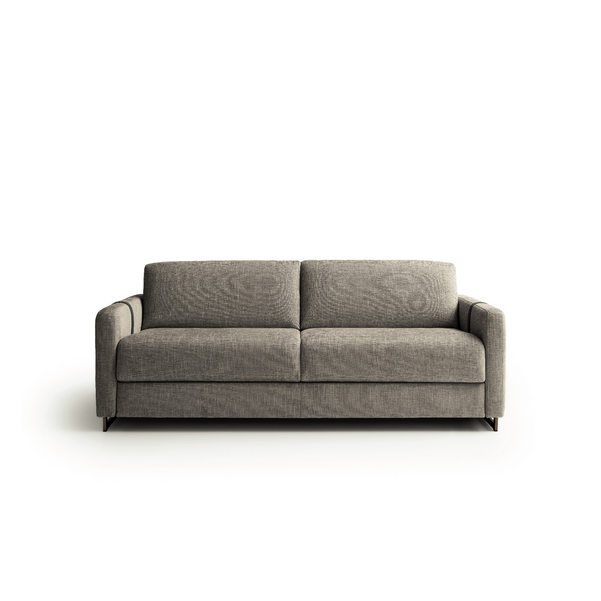 Usiądź, rozluźnij się lub połóż się i wyśpij dobrze na eleganckiej i praktycznej sofie Maya firmy Nicoline Italia. Sofa łatwo przekształca się w łóżko, po prostu rozkładając oparcie i poduszki siedziska, które składają się pod materacem, co jest idealne do miejsc, w których brakuje miejsca. Przyciągające wzrok sprzączki dodają jej stylowego akcentu, który sprawia, że sofa jest wspaniałym centralnym punktem. Dzięki miękkiej tapicerce i wyściełanej wyściółce zarówno na poduszkach sofy, jak i na materacu, sofa zapewnia wygodę i wsparcie przez wiele godzin. Maya dostępna jest w dwóch rozmiarach, aby zaspokoić indywidualne potrzeby. Dostępne są opcje tapicerki materiałowej i skórzanej, a także dopasowane, jaśniejsze lub ciemniejsze szwy. Nogi są dostępne w wielu metalowych opcjach.