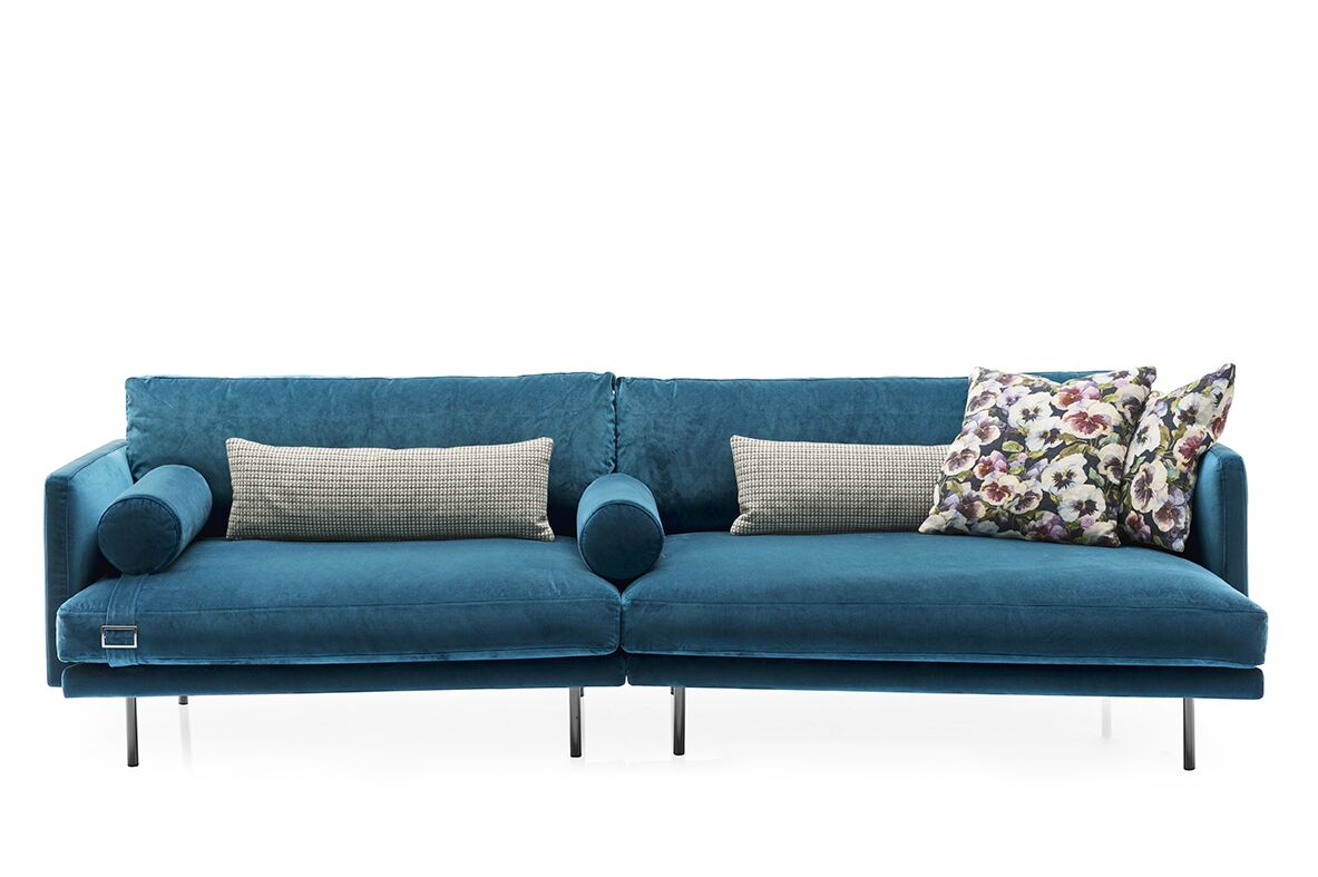 Współczesny styl i najwyższy komfort, ta stała lub modułowa sofa Mies ma głębokie, zachęcające poduszki do siedzenia, które zachęcają do relaksu i zatopienia się w komforcie. Główną cechą tej sofy jest możliwość personalizacji zarówno opcjonalnych okrągłych zagłówków z metalowymi klamrami, jak i poduszek oparcia z dowolną tkaniną z kolekcji. Sofa Mies jest nieskończenie wygodna.