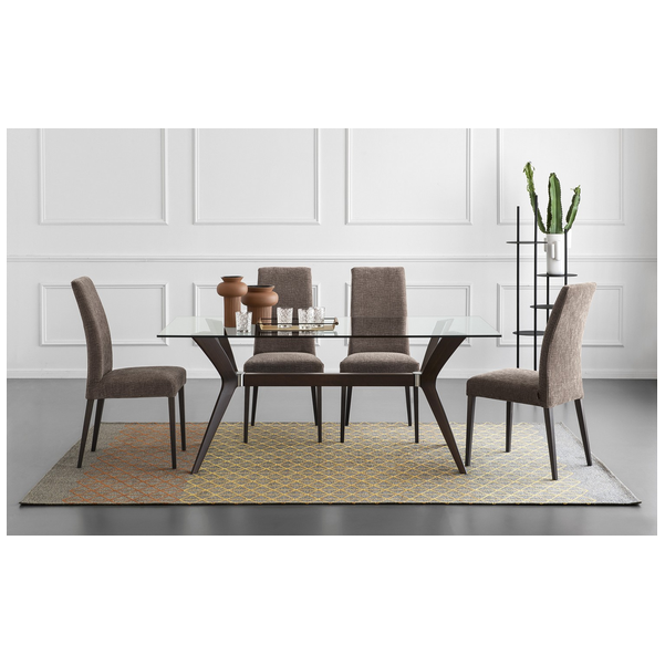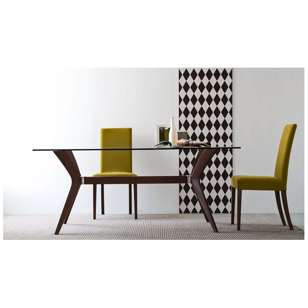 Stół Tokyo wyróżnia się drewnianą podstawą z zaokrąglonymi krawędziami, na której spoczywa prostokątny szklany lub szklano-ceramiczny blat. Cztery ukośne nogi, które tworzą „X”, są połączone środkową podłużnicą za pomocą dwóch metalowych elementów łączących. Stół Tokyo jest idealny, aby pomieścić 6/8 przyjaciół na lunch lub dodać wyjątkowego akcentu do profesjonalnego studia. Odkryj wszystkie szczegóły.