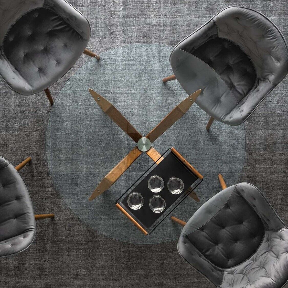 Stół model Tokyo, podstawa z litego drewna i okrągły szklany blat. Klasyczny design. Stół Tokyo wyróżnia się podstawą z litego drewna bukowego z zaokrąglonymi krawędziami, na której spoczywa okrągły blat z hartowanego szkła. Cztery nogi z ukośnymi liniami rysującymi „X” są centralnie połączone metalowym elementem łączącym. Dzięki okrągłemu stołowi Tokyo wygoda jest gwarantowana wszystkim gościom ... nawet jeśli jest ich nieparzysta liczba!