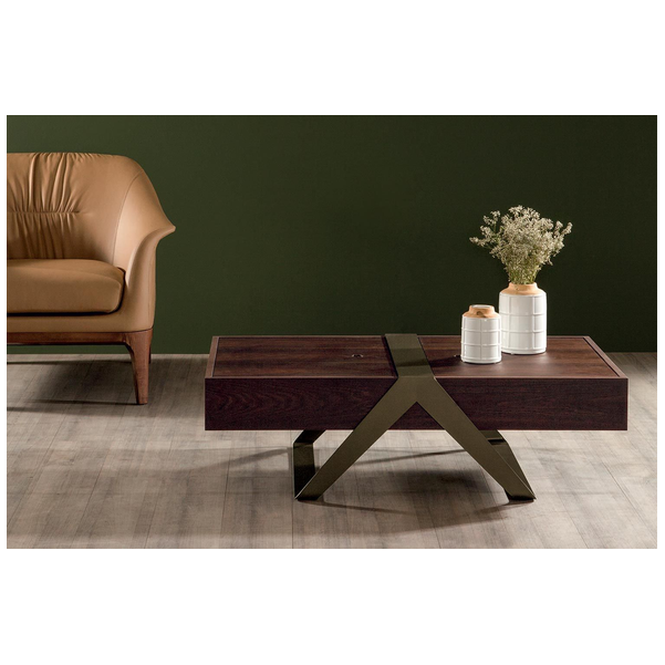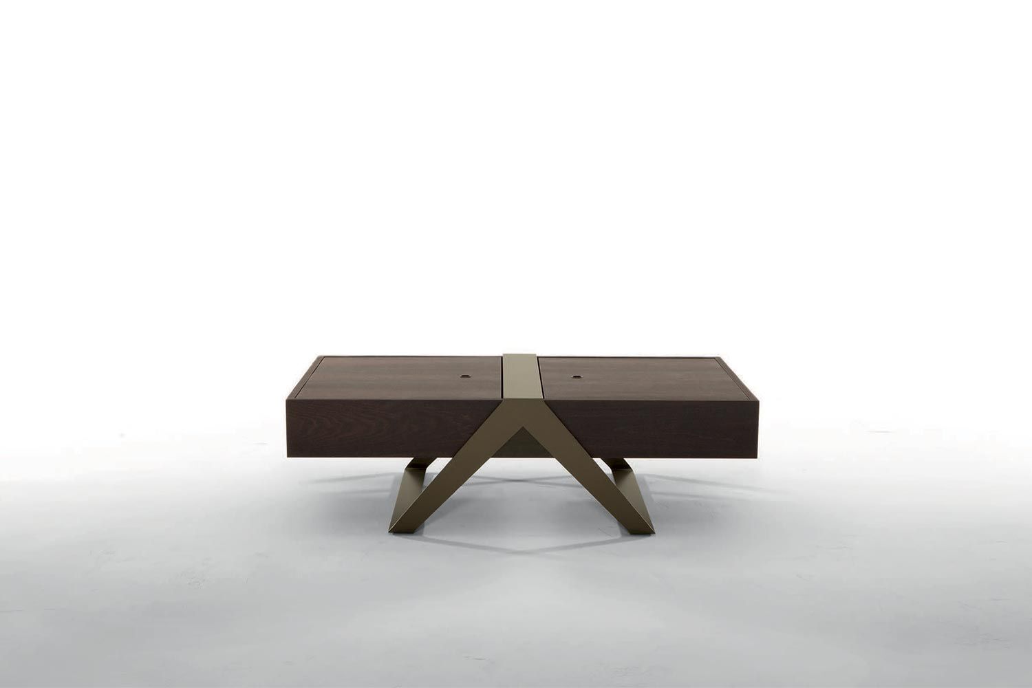 Stolik kawowy Matrioska dodaje odważnego stylu do nowoczesnej jadalni, salonu. Przypominający stół piknikowy, stolik kawowy ma zachęcającą postawę z ustawionymi pod kątem nogami. Kontrast między blatem, a podstawą wyróżnia się wzajemnie i tworzy żywe zestawienie. Dzięki wytrzymałemu, wysokiej jakości materiałom i wyjątkowemu włoskiemu kunsztowi, będzie to mebel dekoracyjny na lata. Podstawa jest wykończona w kolorze Stone Bronze, a blat ma różne wykończenia z drewna.